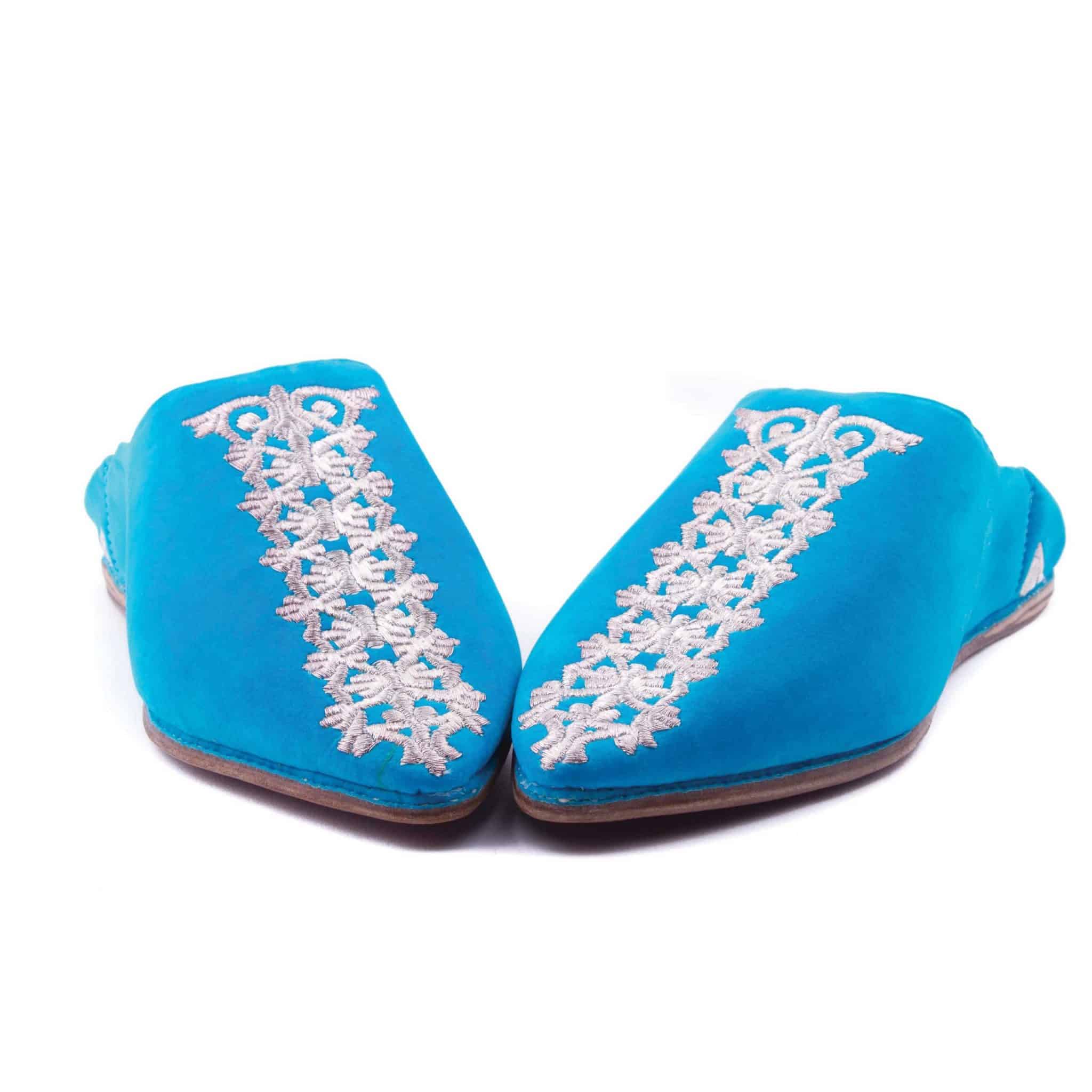 - Babouche Céleste En Velours Bleu Brodées En Soie mode 2021