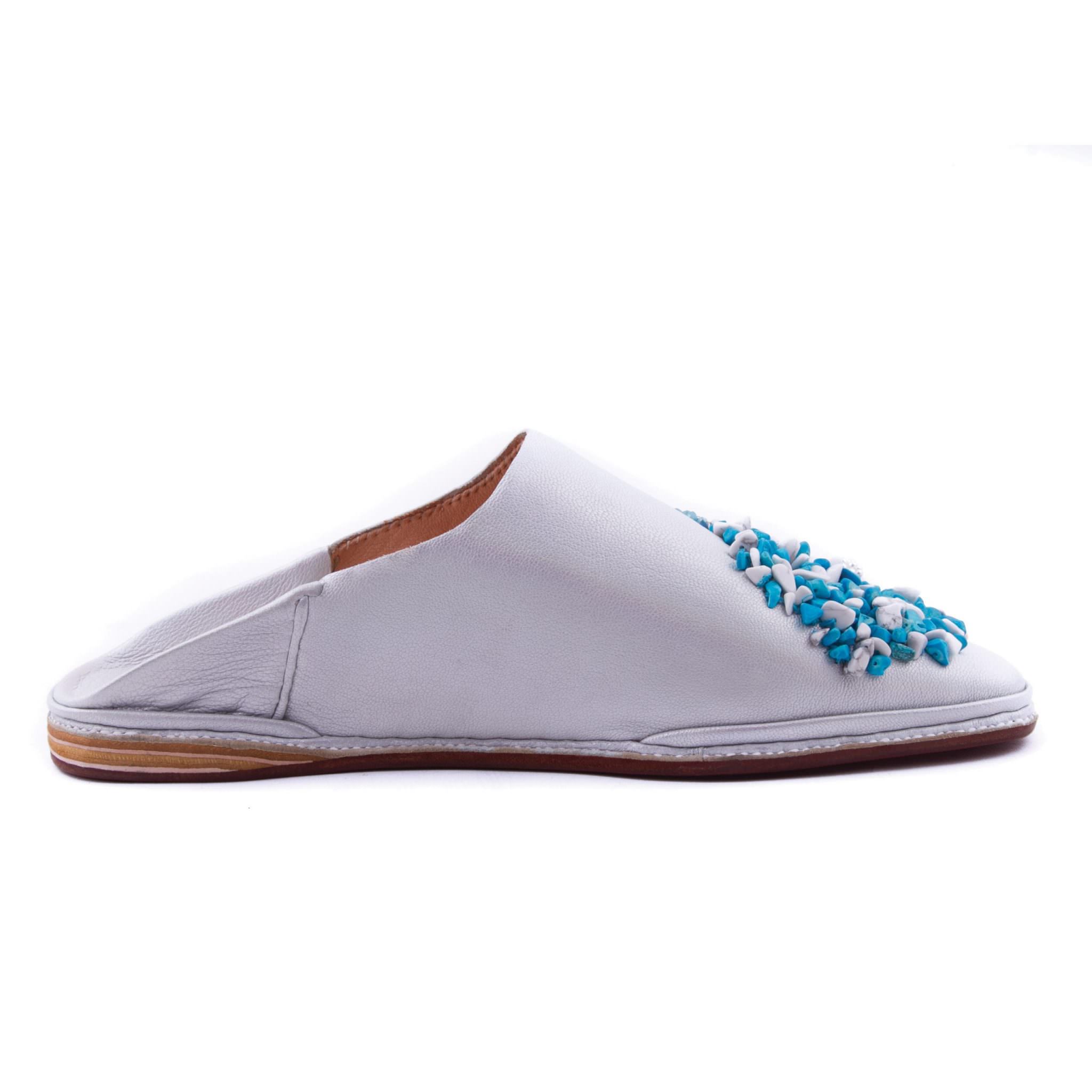- Babouche Gris En Cuir Perlée pour femme modèle 2021