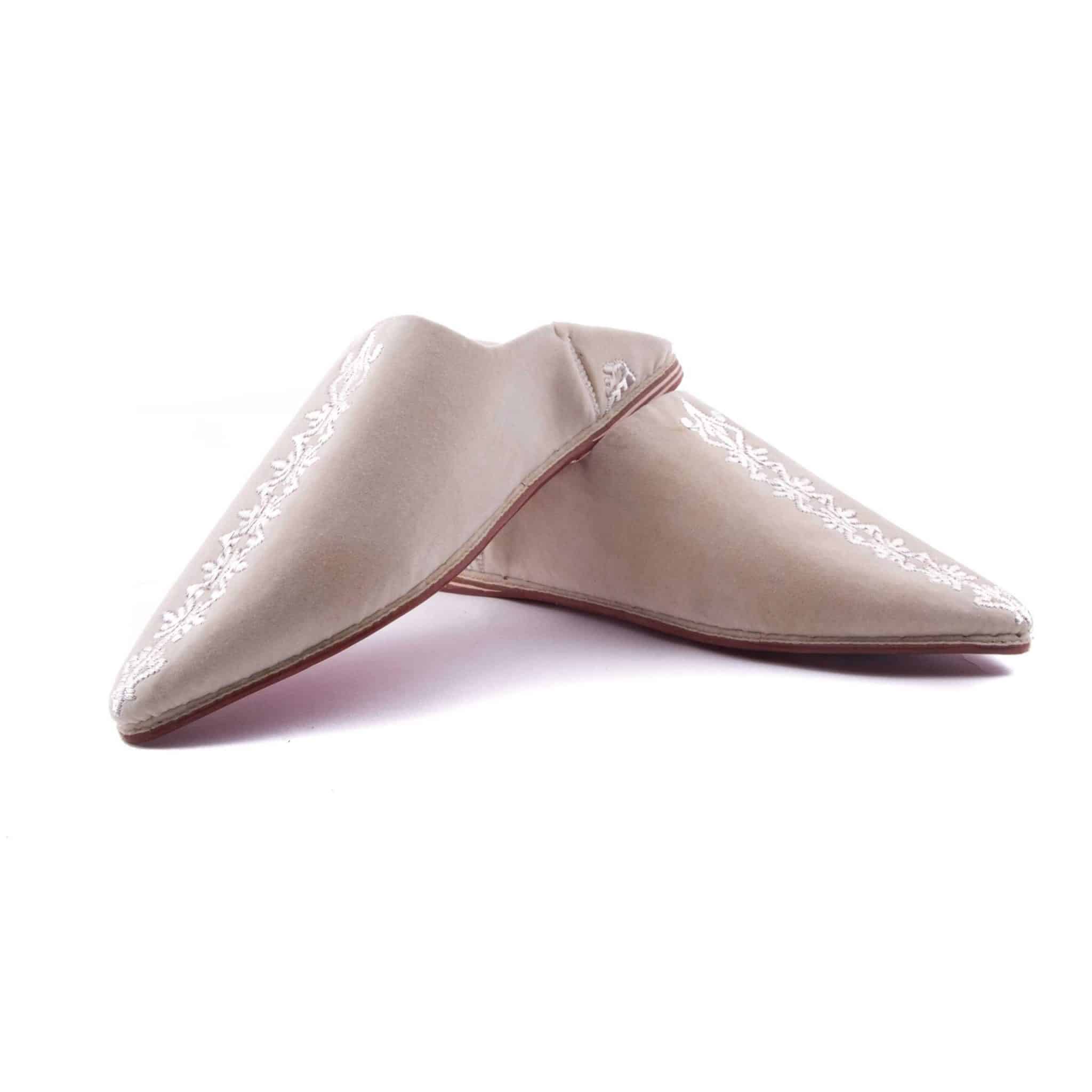 - Babouche Velours Brodées En Soie Blanche femme modèle 2021