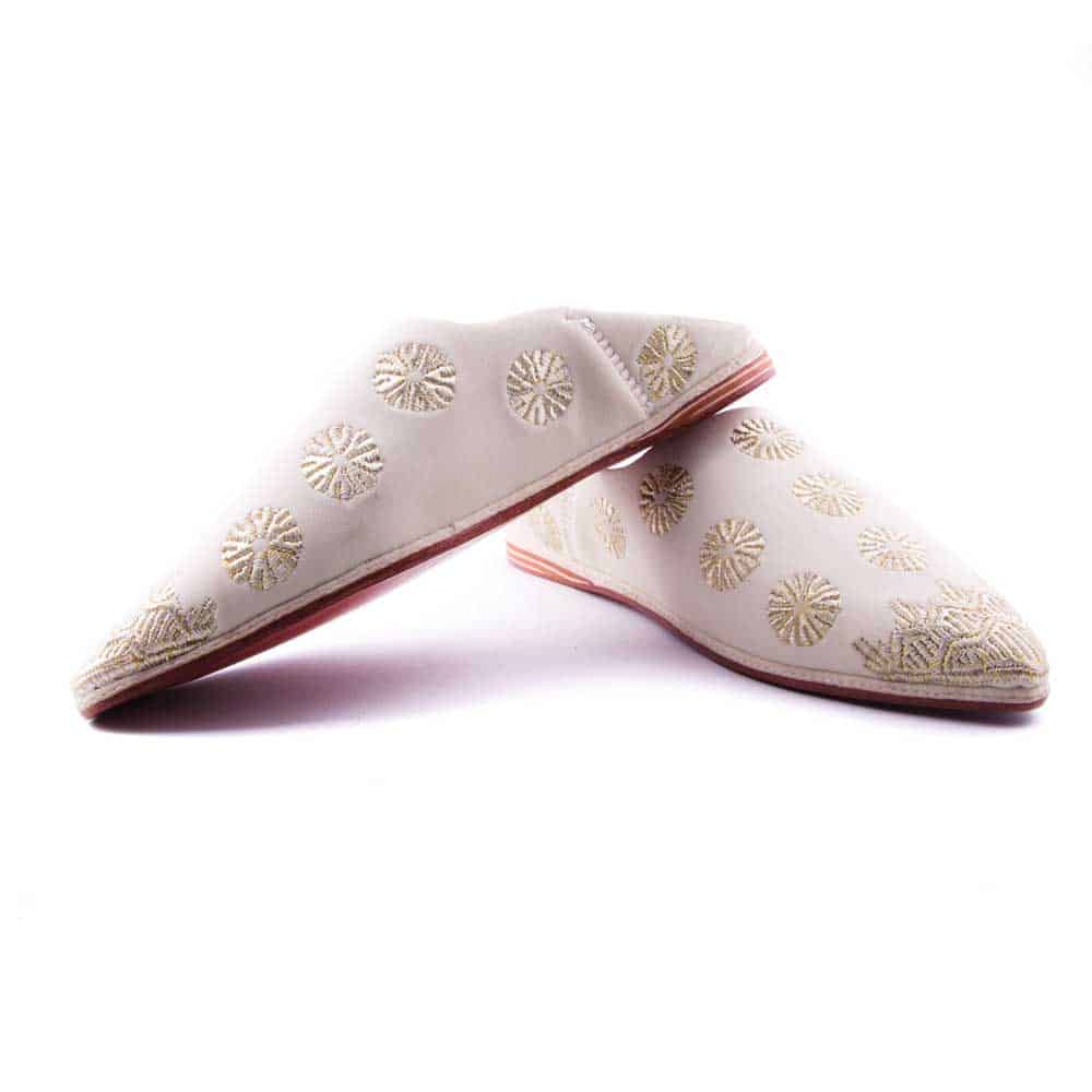 - Babouches Blanc Cassé Brodées En Soie Argenté Et Doré 2021