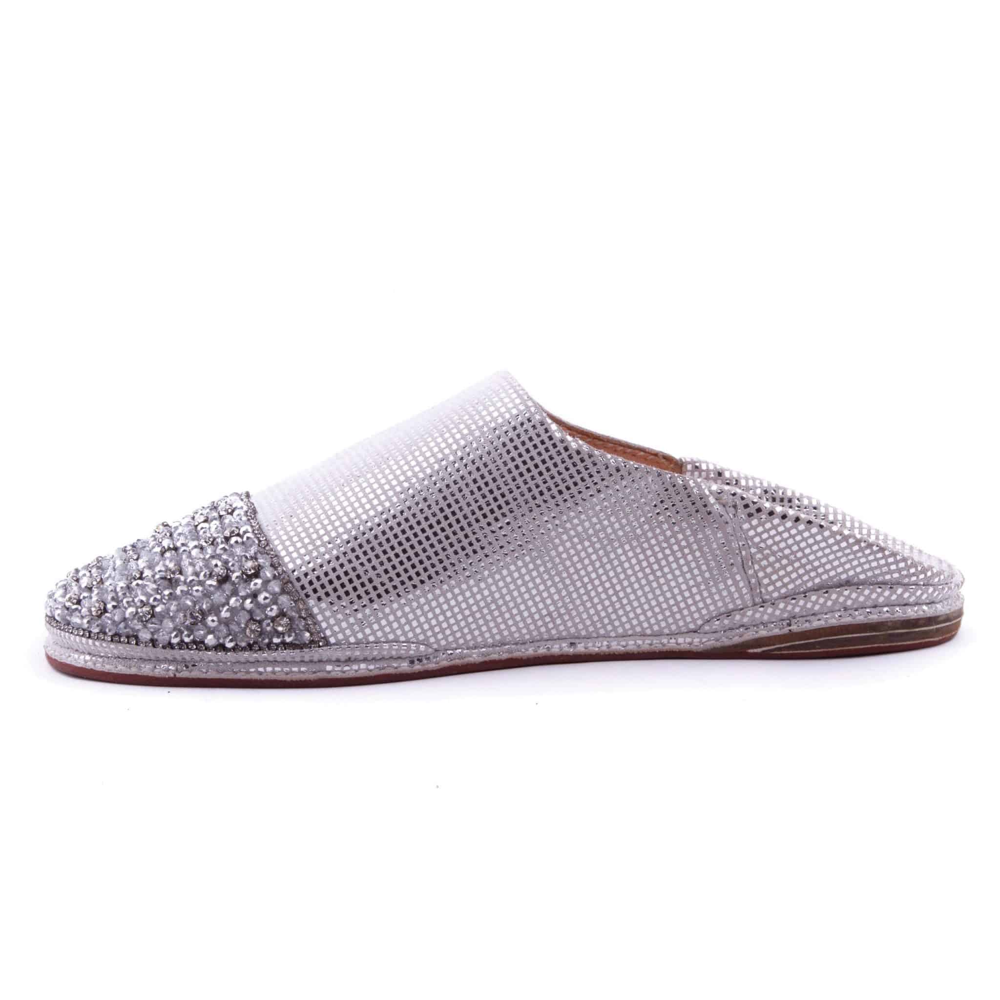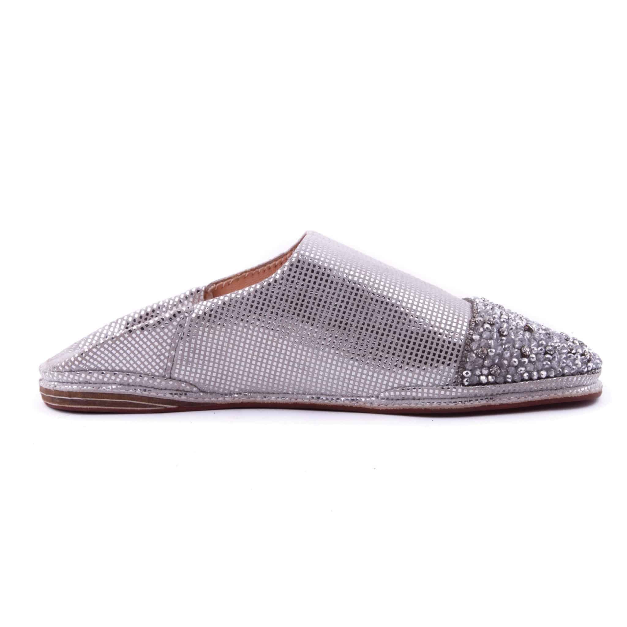 - Babouches Perlés En Cuir Gris pour la femme modèle 2021