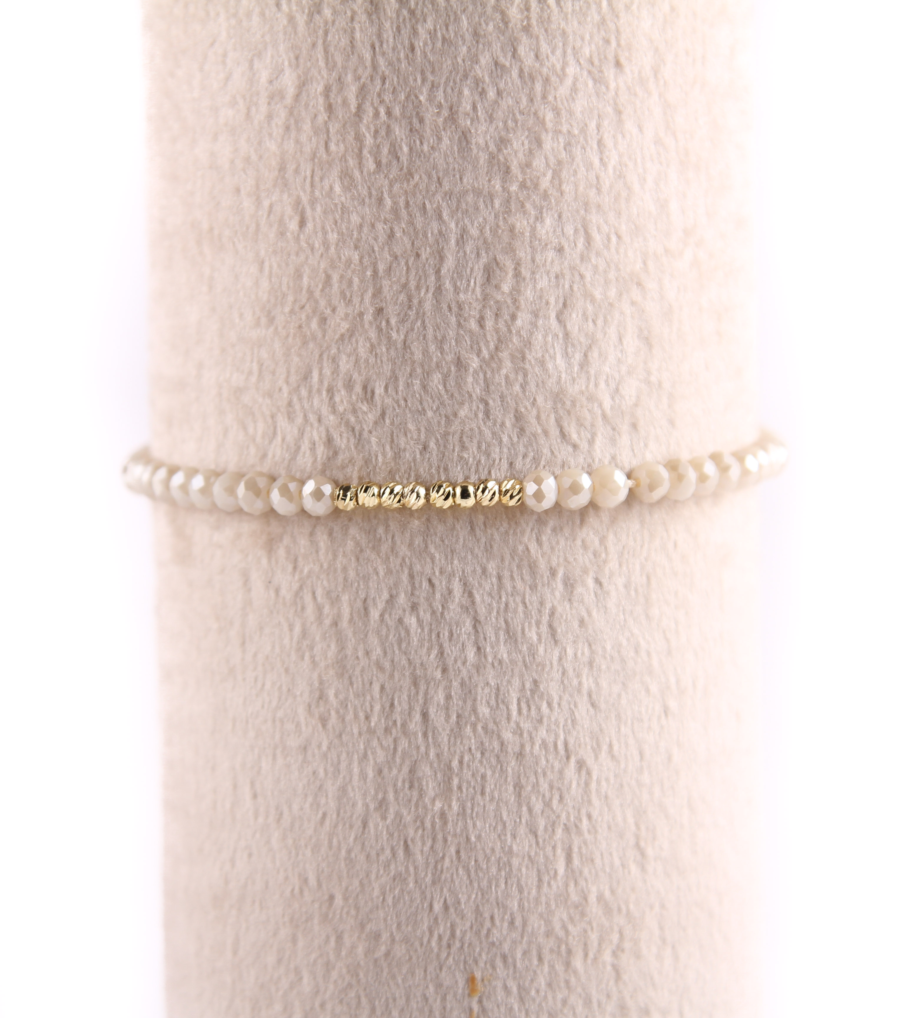 Bracelet artisanal marocain en perles fines, fabriqué à la main par nos artisans de Fès. Chaque bracelet est unique, orné d'accents dorés délicats qui ajoutent une touche d'élégance orientale.