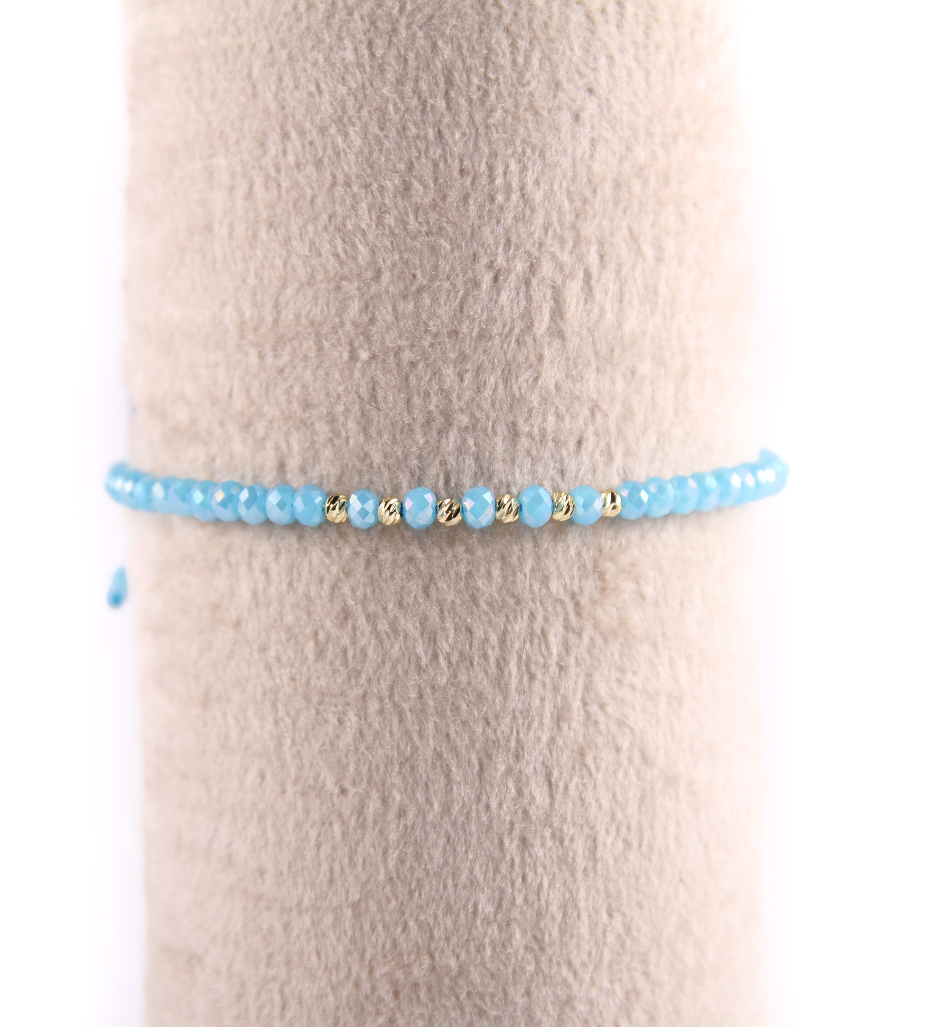 Bracelet artisanal marocain en perles fines, fabriqué à la main par nos artisans de Fès. Chaque bracelet est unique, orné d'accents dorés délicats qui ajoutent une touche d'élégance orientale.