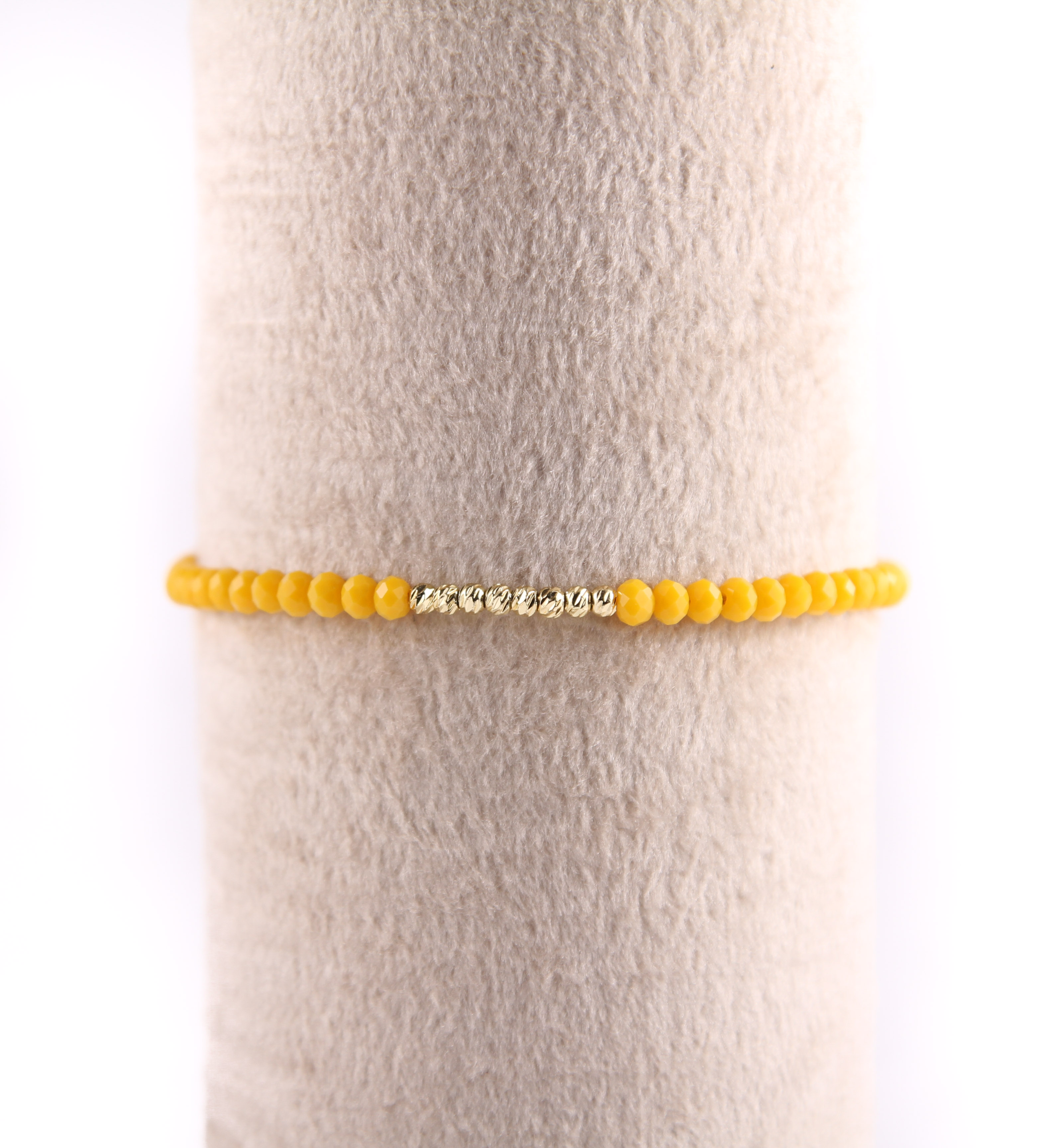 Bracelet artisanal marocain en perles fines, fabriqué à la main par nos artisans de Fès. Chaque bracelet est unique, orné d'accents dorés délicats qui ajoutent une touche d'élégance orientale.