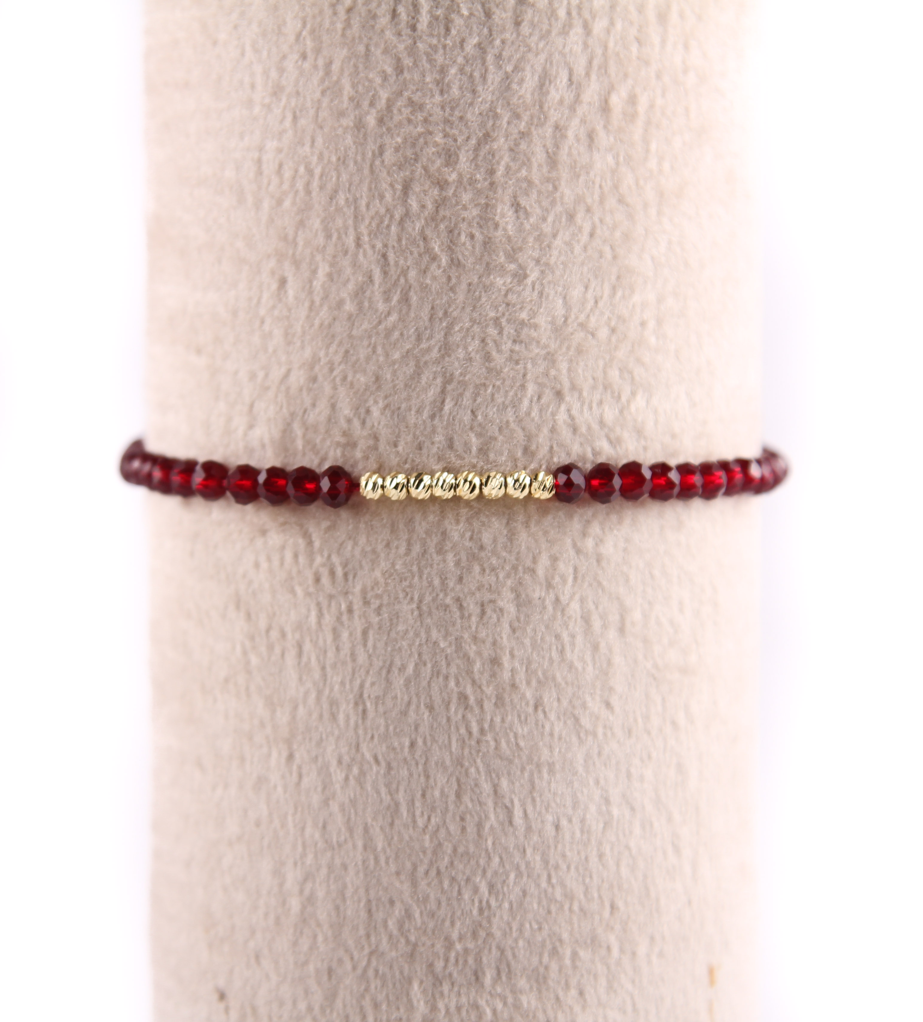 Bracelet artisanal en perles rouge grenat avec accents dorés