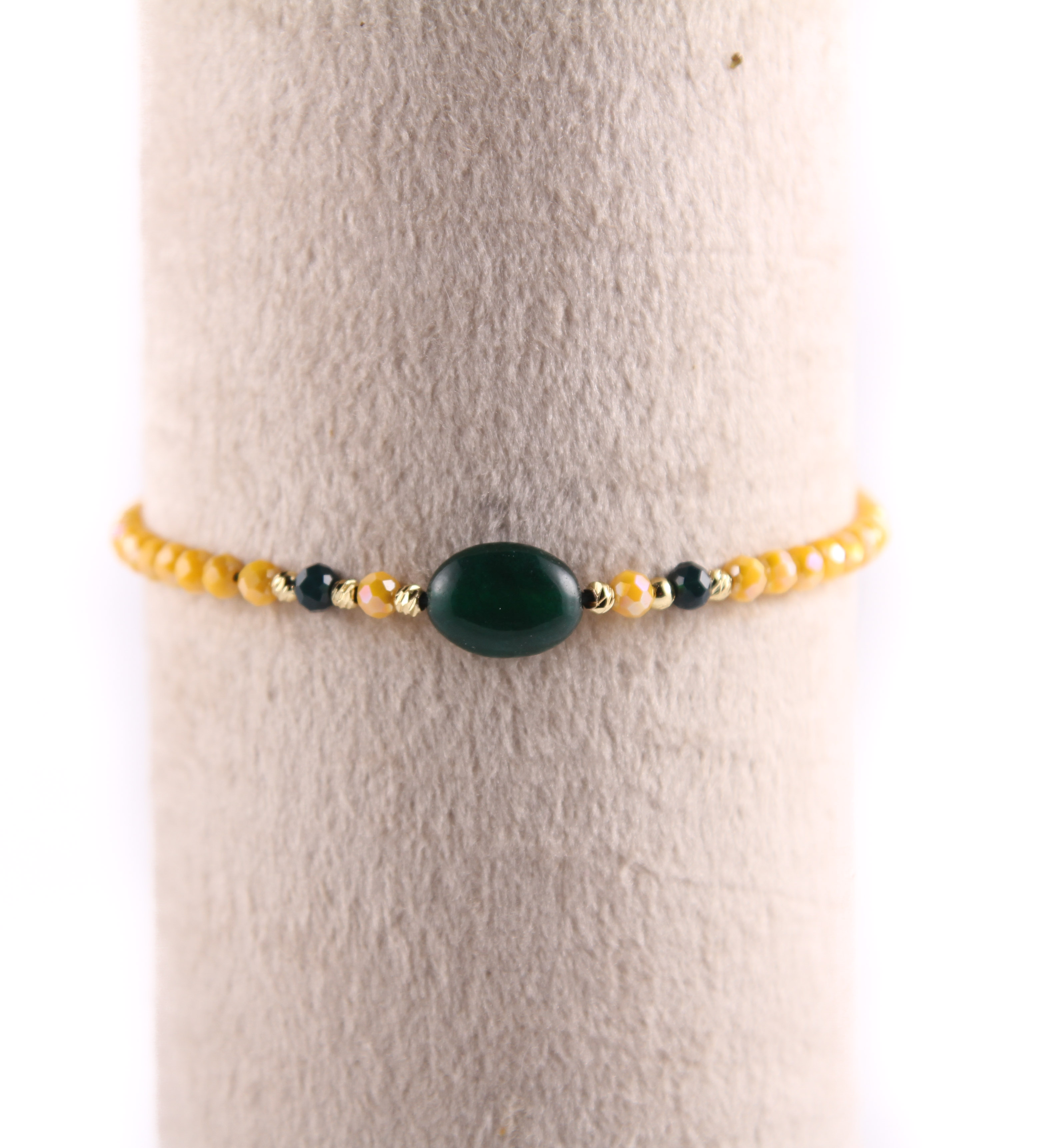 Bracelet artisanal marocain en perles fines, fabriqué à la main par nos artisans de Fès. Chaque bracelet est unique, orné d'accents dorés délicats qui ajoutent une touche d'élégance orientale.