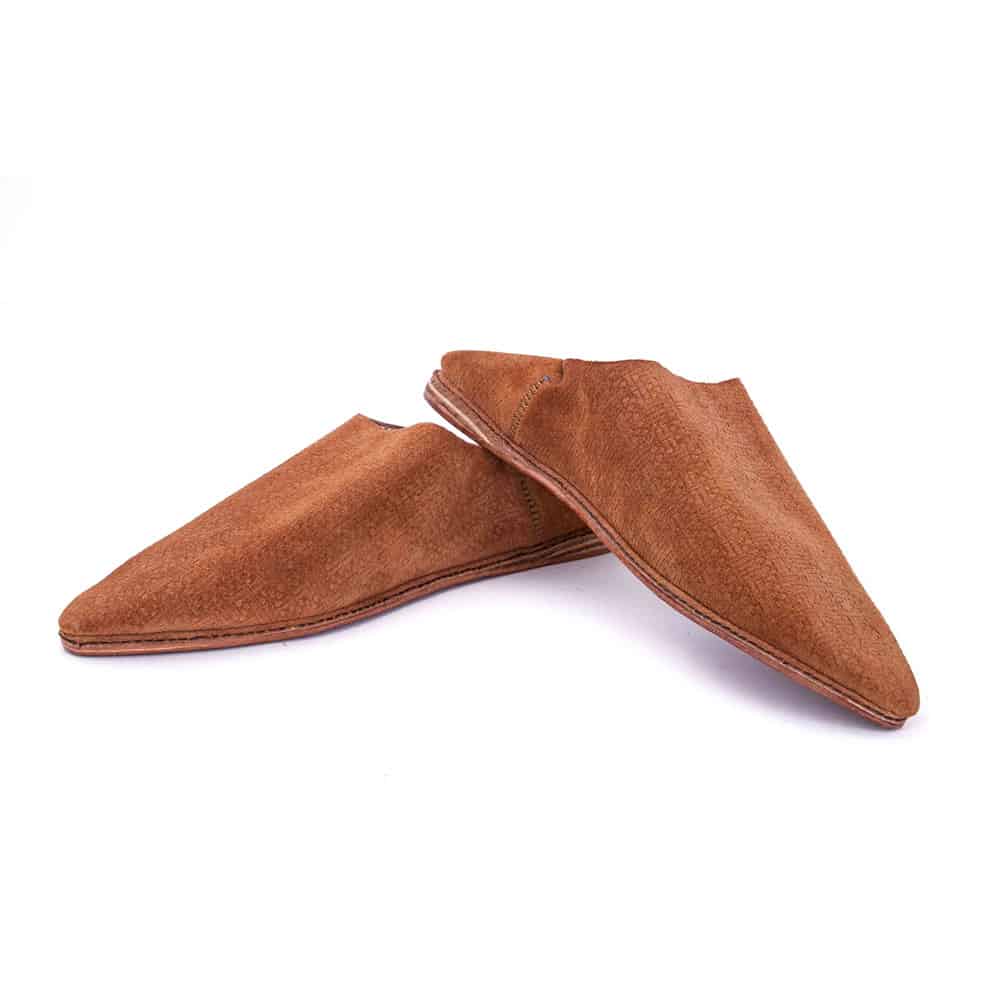 Babouche marocaine pour femme en daim. Fabrication artisanale a Fes, cuir de qualite superieure. Confort et elegance traditionnelle.